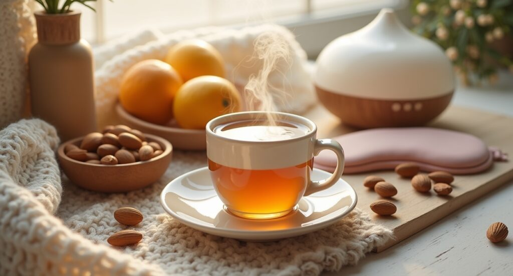 - Upgrade your hydration: Herbal teas (like chamomile or green tea) and water-rich foods (cucumbers, oranges, soups) add subtle moisture.